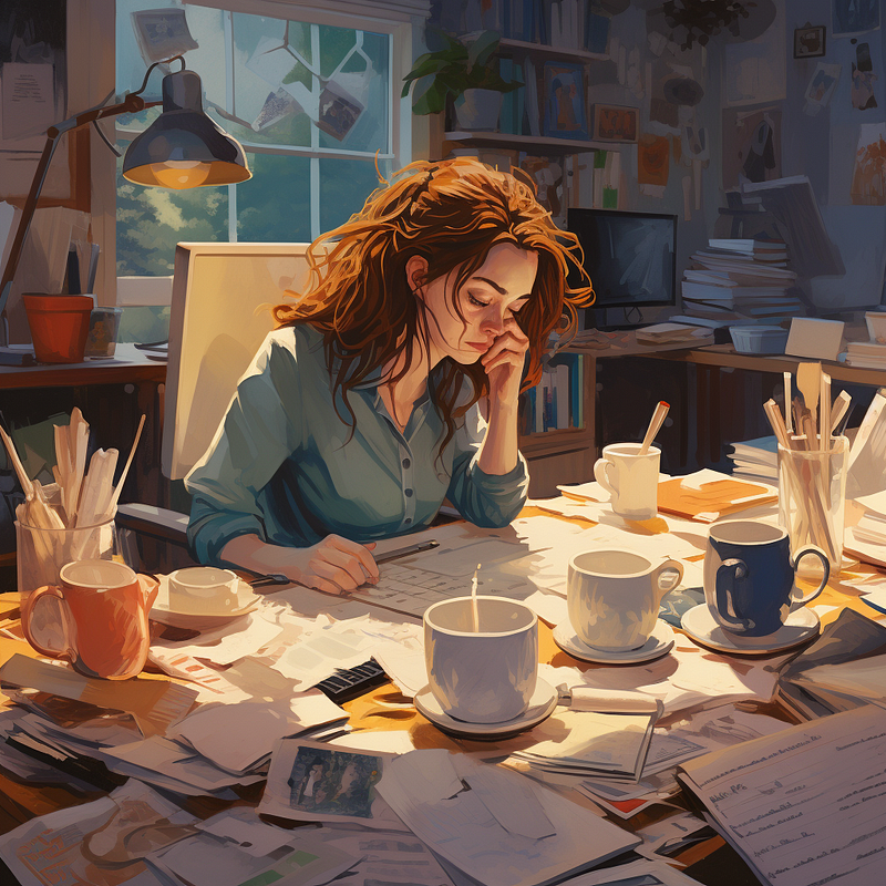 Let’s begin with Jenny’s story. Jenny works 12 hours a day, but her boss is still dissatisfied with her output. What’s the problem? Though Jenny is working hard, her methods are inefficient. The five empty coffee cups on her desk symbolize effort but not efficiency.