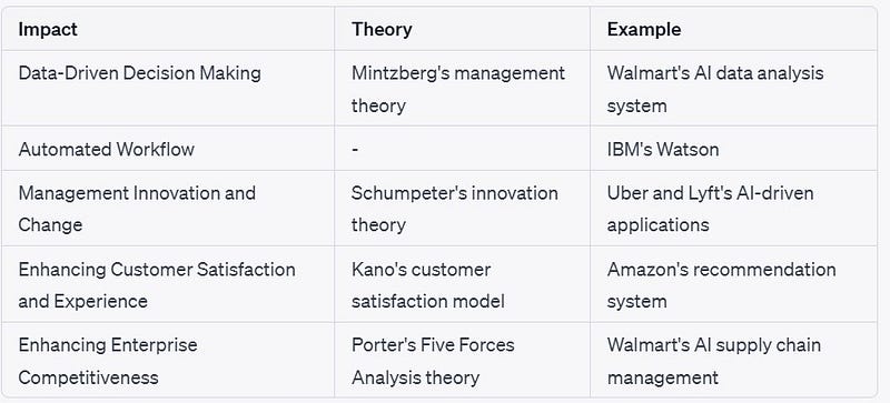 According to Mintzberg’s management theory, a successful manager needs to play a good role as an information processor. With the rapid growth of data, the amount of information that managers need to handle is also growing astonishingly. In this case, AI can help managers effectively process large amounts of data and extract valuable insights from it.